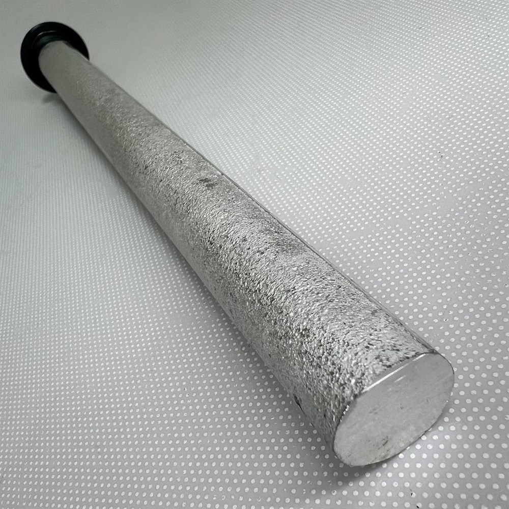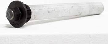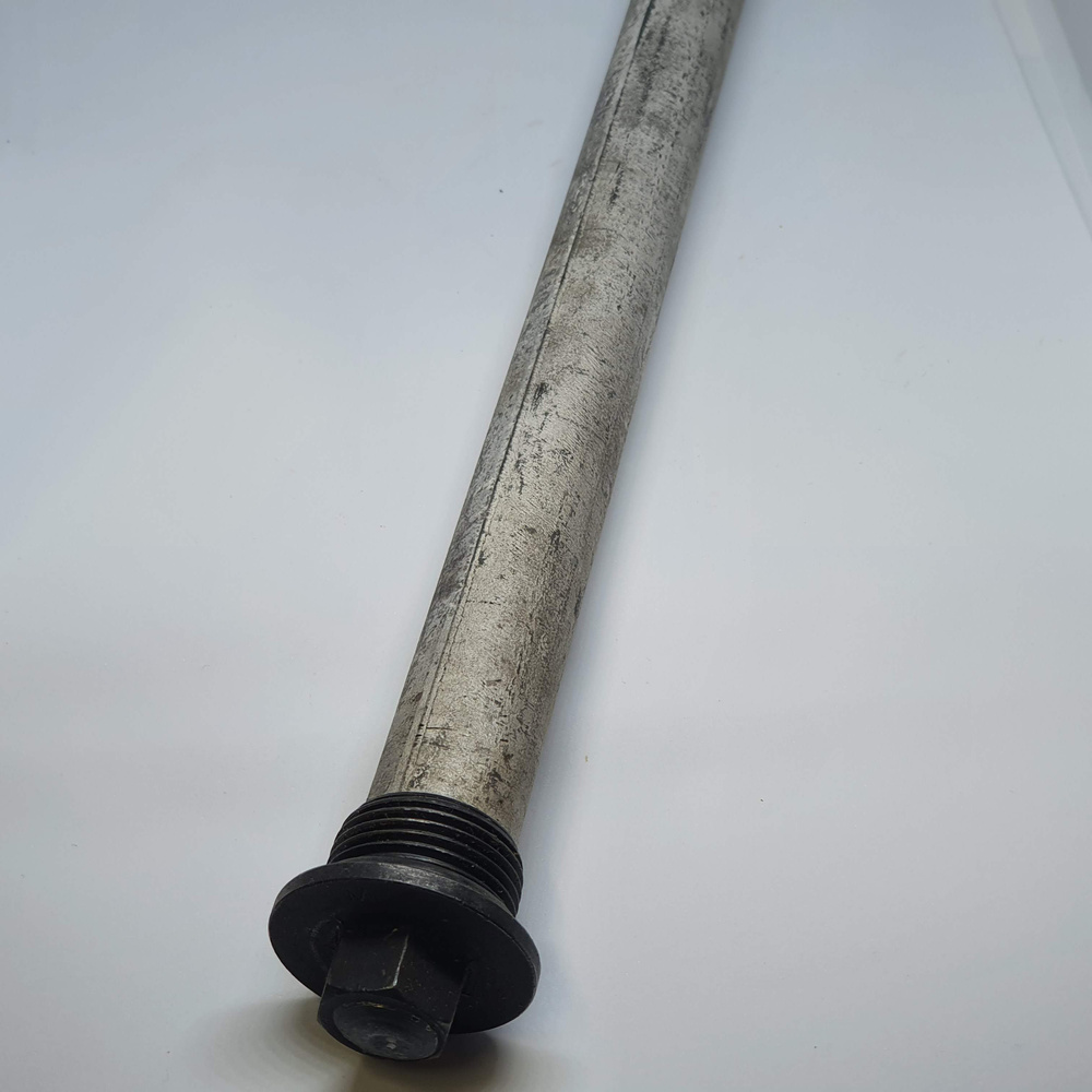 Функция анода: защищает бак и детали водонагревателя от коррозии, препятствует возникновению накипи на стенках нагревательного элемента (ТЭНа), снижает жёсткость воды. Анод представляет собой стержень из магниевого сплава на металлической шпильке с резьбой, крепится к фланцу ТЭНа и вставляется внутри накопителя.